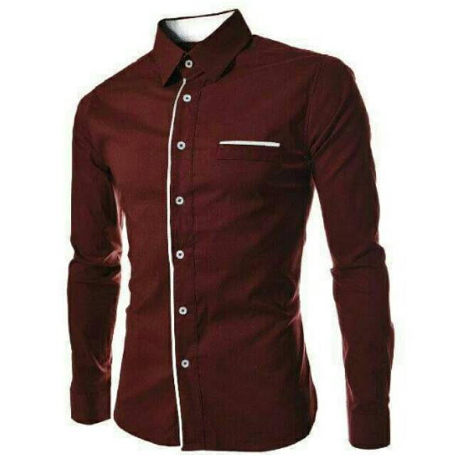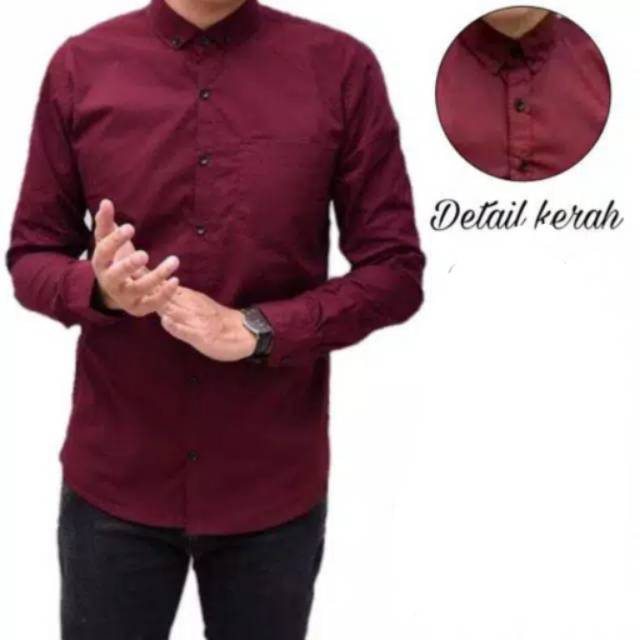 Jual Kemeja Pria Lengan Panjang Hem Pria Warna Maroon Indonesia Shopee Indonesia
