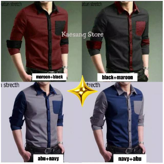 Jual Kemeja Pria 2tone 2 Lengan Panjang Warna Merah Maroon Hitam Abu Abu Biru Navy Ukuran M Slim Fit L Indonesia Shopee Indonesia