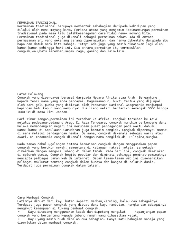 Kedua-dua mereka akan berhadapan dengan satu sama lain dengan papan. Asal Usul Serta Sejarah Permainan Tradisional Congkak. Top 18 Sejarah Congkak Tradisional Mới Nhất 2022 0 penilaian 0 menganggap dokumen ini.