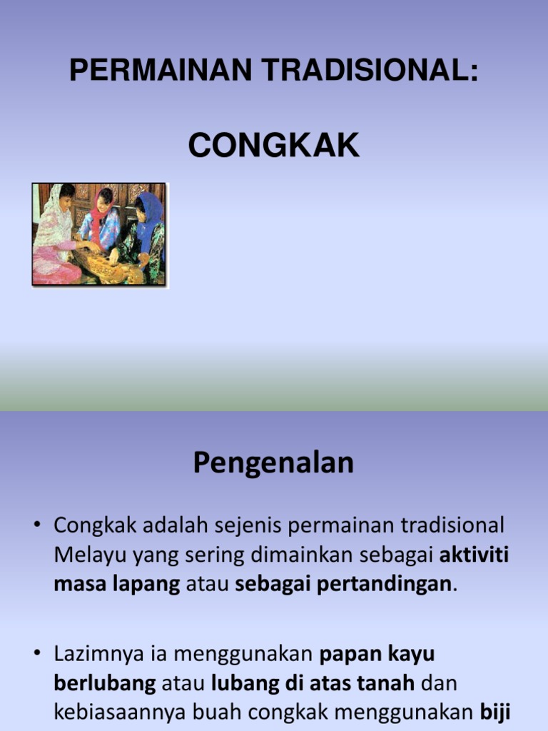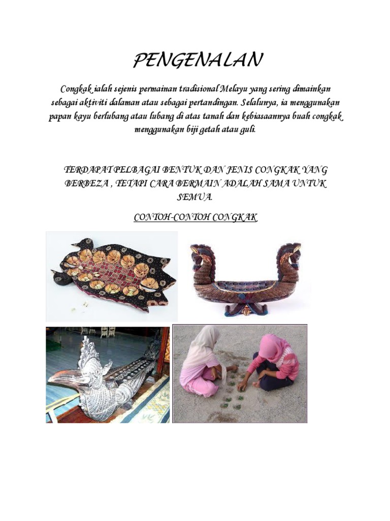 Permainan congkak dipercayai berasal daripada Negara Afrika atau ArabBagaimanapun bukti tertua yang dijumpai oleh cari gali purba yang dibiayai oleh. Asal usul 1 Alat Permainan 2-6 Cara Bermain 7-9 Pemenang Lampiran 10-11 Rujukan 12-13 14-19 20 ii Pengenalan. Permainan congkak merupakan salah satu.