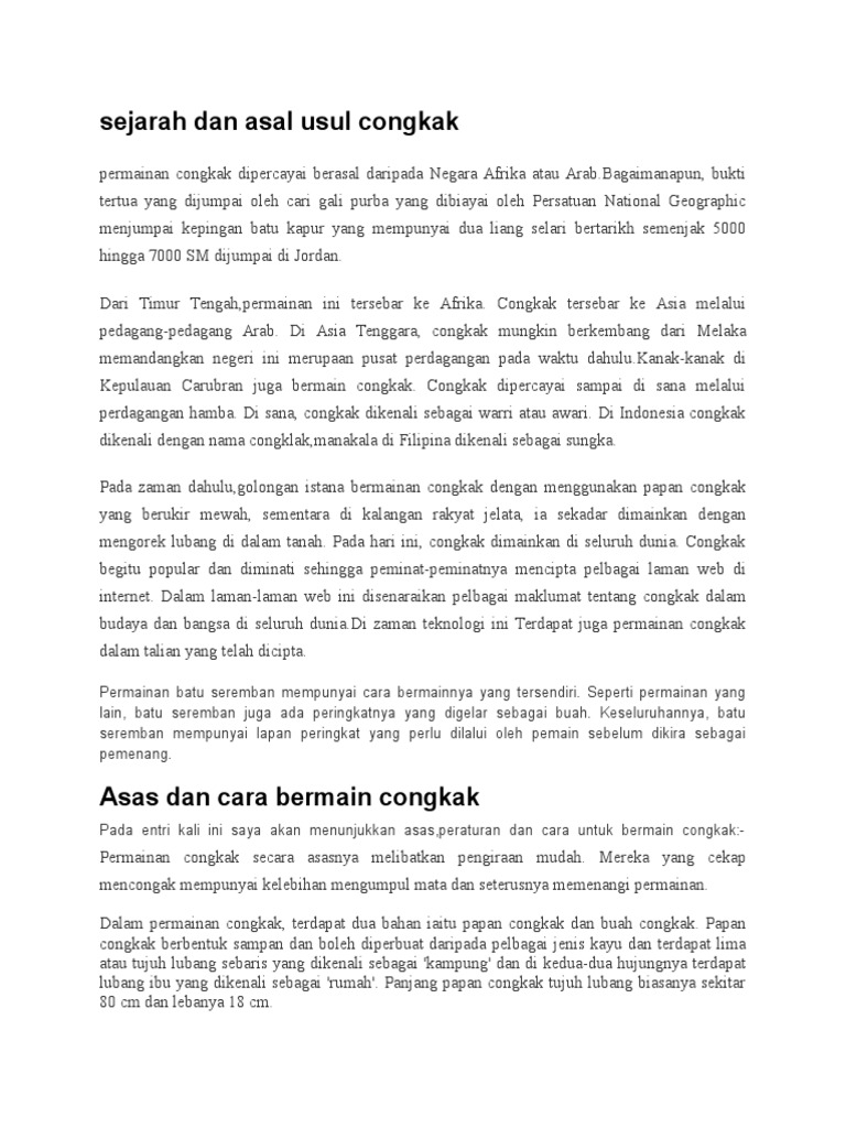 Sejarah Dan Asal Usul Congkak Pdf